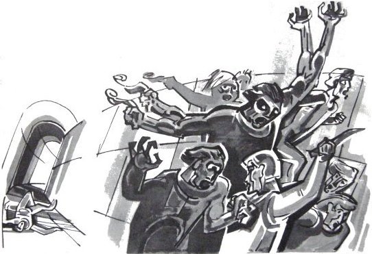 Враги нависли над ним со всех сторон. Окруженный, он бил наугад, лишь бы попасть.