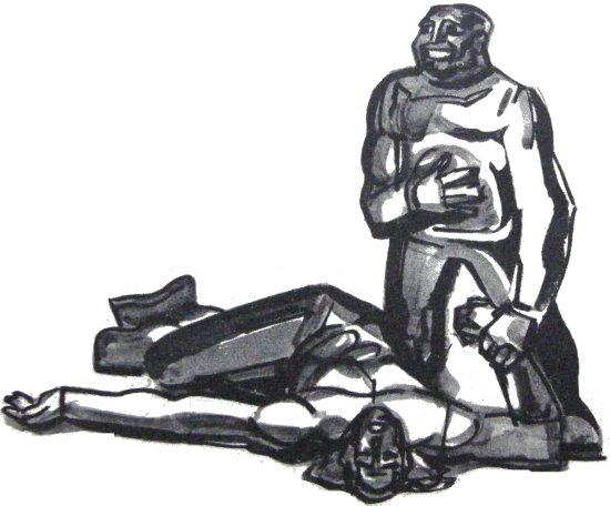 Свидетель жил в маленьком вонючем помещении на краю общинной, где был легкодоступен всем, нуждающимся в его услугах. Он сидел на пороге, ковыряя ногтем в зубах. Его ученик, прыщавый близорукий подросток сидел на корточках за его спиной.