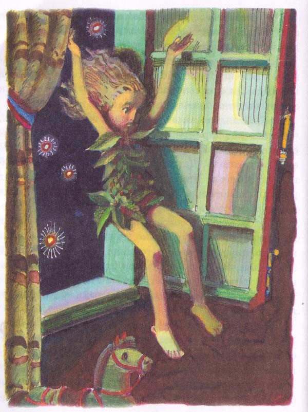 – А разве листья не валялись возле окна, мам? Совершенно верно. Листья были обнаружены как раз возле окна. Миссис Дарлинг растерялась. Венди говорила с такой уверенностью. Решительно не было никакой возможности объяснить ей, что все это она увидала во сне.