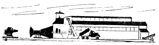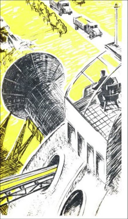 Художник А. Гусев изобразил на обложке деталь этого сельскохозяйственного комбината. Общий вид зерносушилки — на нижнем рисунке.