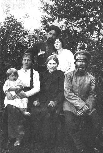 Сидят; отец и мать Дыбенко, его сестра с ребенком.