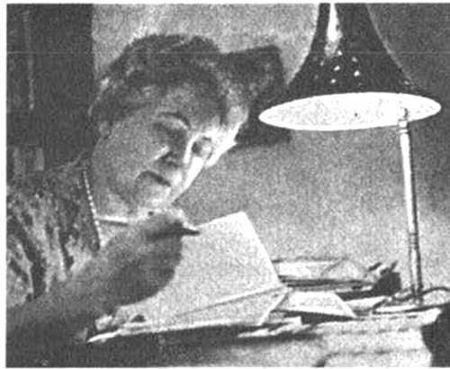 A. M. Коллонтай в своем кабинете в Советском посольстве у радиоприемника слушает сообщения о положении на фронтах великой Отечественной войны. Тревожные дни октября 1941 года.