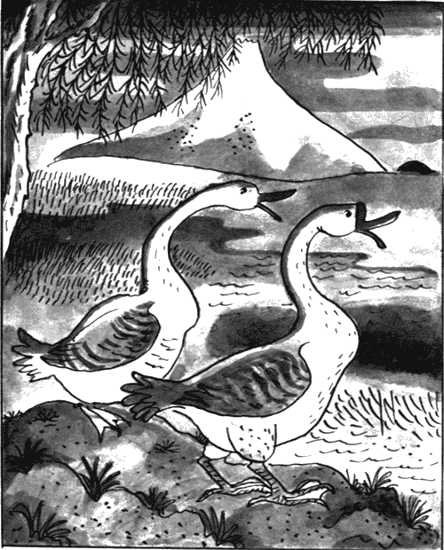 В старину, в далёкую старину, лет девятьсот назад, жил в Японии один поэт и учёный человек. Каждое лето покидал он пределы столичного города[16] и отправлялся в небольшой дом, стоявший в тени невысокой горы. Там Такакуни из рода Минамото спасался от зноя и духоты и предавался любимому занятию. Он без конца мог слушать рассказы бывалых людей о недавних происшествиях, сказки или предания и легенды, уже и для него бывшие глубокой стариной. Заколов волосы в пучок на макушке и обмахиваясь большим веером, сидел он за ширмами и записывал услышанное на длинных листах бумаги. Так, согласно легенде, получилась книга под названием «Стародавние повести». В ней немало народных сказок. Подобные сборники создавались и позже. Их знают в Японии многие дети. Вот и в нашей книге упоминается сказка о рыбаке Урасима и рассказывается сказка о Журавушке и журавлиных перьях. Это очень древние, очень знаменитые сказки.