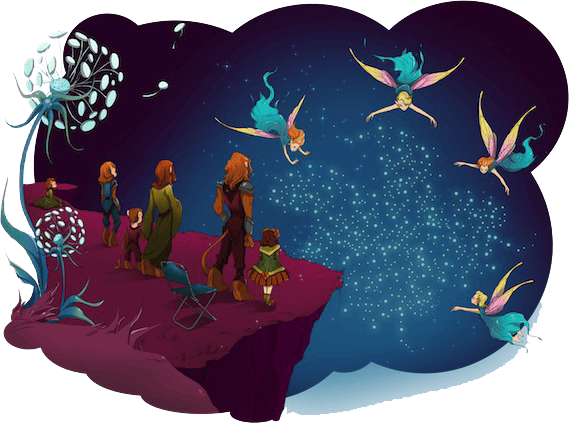 Когда они вышли наружу, то увидели множество крылатых волшебников, спешащих вниз, чтобы расколдовать леоменов и звездных фей.