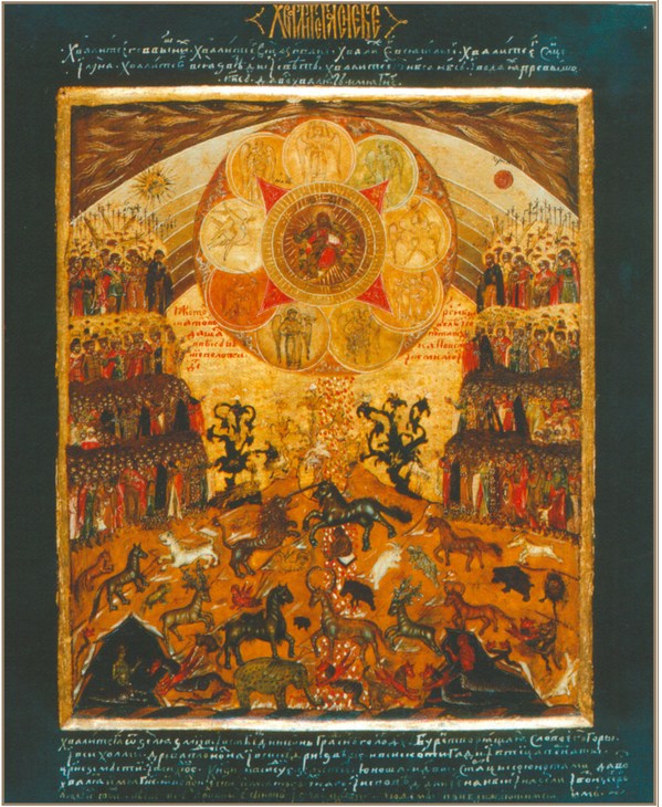 1 Например, резная икона «Всякое дыхание» в коллекции И. С. Остроухова, «Хвалите» в музее Александра III в Петрограде. Ср. Описание икон «О Тебе радуется» в Списком иконописном подлиннике (Памятники древней письменности. Вып. IV, 1898, с. 170, 180.)