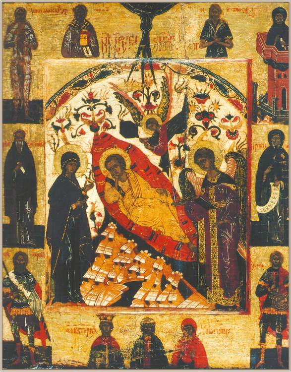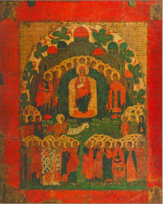 3 К иконам этого рода можно отнести икону Софии Премудрости Божией в Новгородском Софийском соборе, в Юрьевском монастыре Икону Божией Матери, именуемую Неопалимая Купина, и т. п.