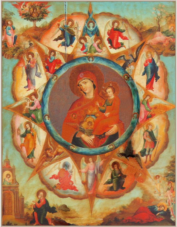 Впрочем, и священная живопись Востока дозволяет себе особенное разнообразие именно при изображении таинственного лика Пресвятой Девы. В особенности у нас, на святой, благочестивой Руси, образ Богоматери имеет множество особых форм, освященных издревле благословением Церкви.