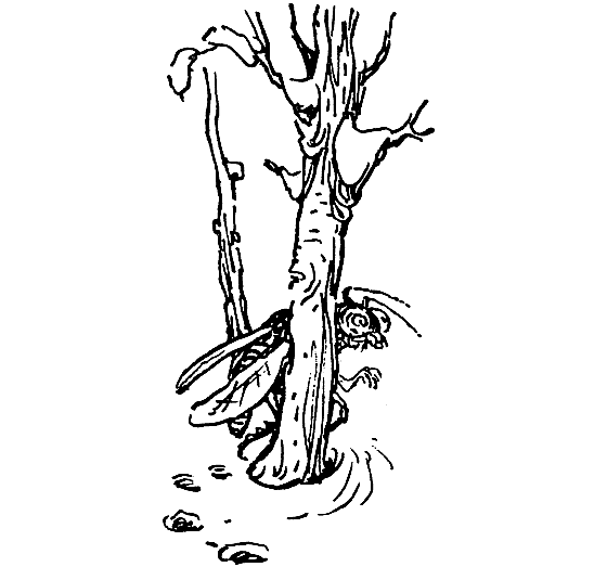 И когда они уже были на ступеньках школы, то увидели, что к школе ковыляет странное существо, похожее на насекомое, — с четырьмя тонкими ручками и двумя ножками. Головка у него муравьиная, но мохнатая, а глаза золотые и круглые.