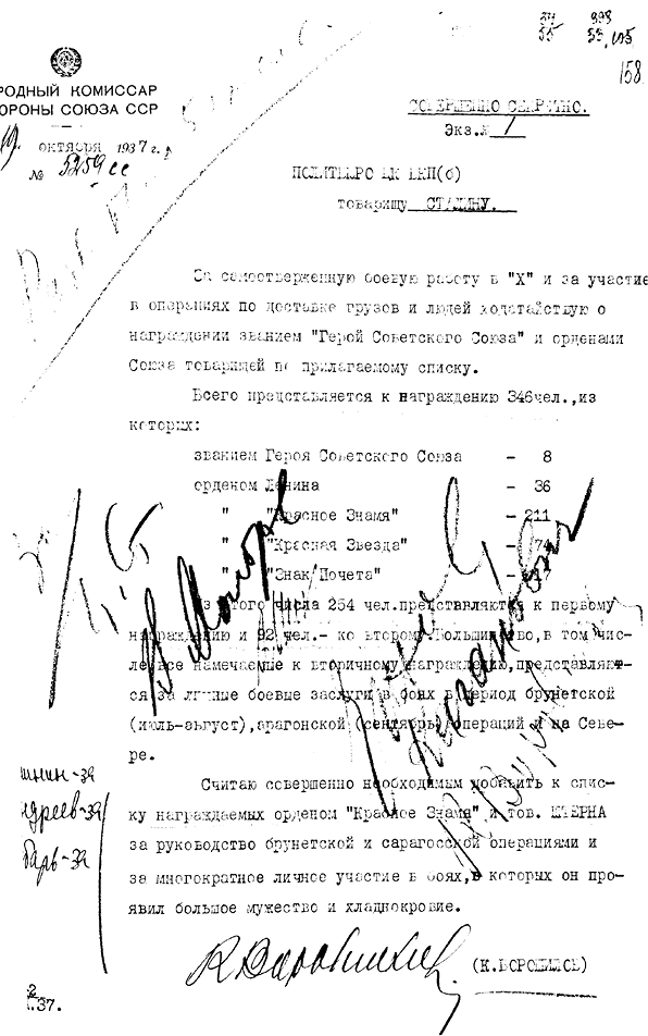 Докладная записка военного советника в Албании А.И. Родимцева министру обороны СССР Н.А. Булганину с предложениями о реорганизации албанской армии (РГАСПИ)