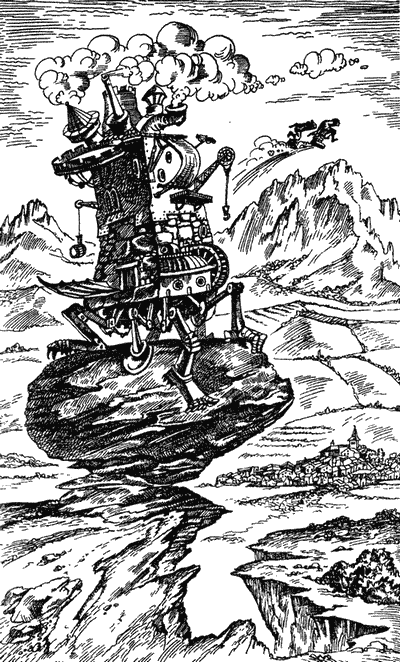 Поэтому, когда через несколько месяцев на холмах близ Маркет-Чиппинга внезапно объявился высокий черный замок, изрыгая из четырех высоких тонких башен облака черного дыма, все были уверены, что это Ведьма снова снялась с Болот и теперь будет терроризировать всю округу, как она уже делала лет этак пятьдесят назад. В Маркет-Чиппинге и вправду перепугались. Никто не выходил из дому один, особенно по ночам. Страшнее всего было то, что замок не стоял на месте. Иногда он черным пятном маячил на торфяниках на северо-западе, иногда нависал над скалами на востоке, а иногда спускался с холмов и сидел среди вереска прямо за последней к северу фермой. Иногда было даже видно, как он движется, а из башен так и валят грязнющие черные клубы дыма. Некоторое время все думали, что совсем скоро замок спустится прямо в Долину, и мэр начал поговаривать о том, что надо бы послать к королю за подмогой.