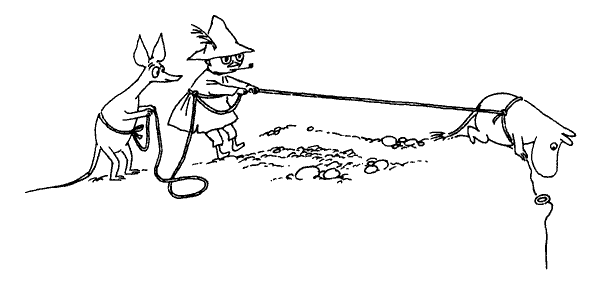 Когда Снифф вернулся, Муми-тролль привязывал качели в саду.