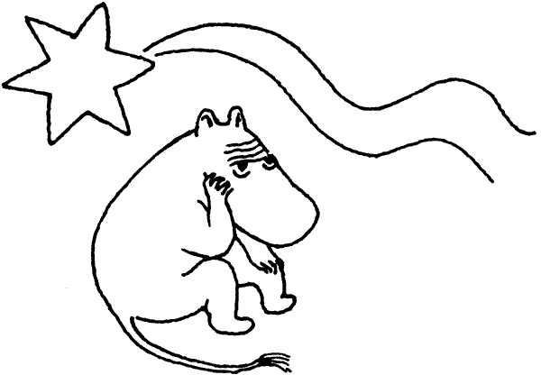 — Только звезду, и она была ужасно твёрдая! — закричал в ответ Снифф и заполз под коврик. Не хочет он больше их видеть. На торте было написано: «Дорогому Муми-троллю», а вовсе не «Дорогому Сниффу». И кисонька не показывается, хотя уже девятый час.