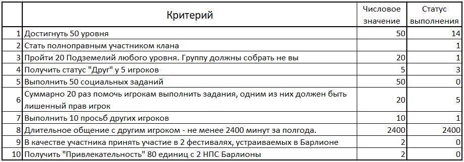 1 ранг : Вы уничтожили своего первого босса «Барлионы». Ваше умение находить выход из трудных ситуаций впечатляет. Урон всем боссам увеличен на 1 %. Для получения следующего ранга необходимо уничтожить 5 боссов (прогресс: 1 из 5)