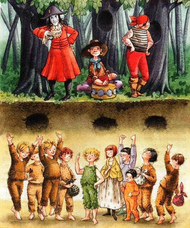 Конечно, в воображении каждого — своя страна Нетинебудет. В своей стране Джон, например, жил в перевернутой лодке, Майкл — в вигваме, а Венди — в шалаше из крепко сшитых друг с другом больших листьев, и к тому же у нее был ручной волк, которого родители покинули в детстве. Но с этой небольшой разницей острова Нетинебудет похожи друг на друга, как братья, у которых всегда одинаковые носы. На этих волшебных берегах дети, играя, вечно вытаскивают на берег свои рыбачьи лодки. Мы с вами в детстве тоже там побывали. До сих пор до нашего слуха доносится шум прибоя, но мы уже никогда не высадимся на том берегу.