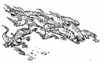 Прошло минуты три-четыре — Алиса чувствовала, что ее похитители начали втаскивать ее наверх. И было странно — она поняла, что у похитителей не было рук. Ведь если тебя схватили и тащат, ты чувствуешь руки, которыми тебя схватили. А ее тянут десятки маленьких лапок… Ну конечно же, это маленькие лапки! Ящерицы!