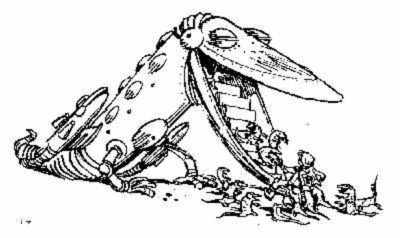 Тут лапки отпустили ее, Алиса сбросила с себя покрывало, и оказалось, что она стоит посреди грузового отсека космического корабля, который представлял собой обширный зал, набитый вещами и добром, которое ящерицы набрали на Земле. Множество ящериц окружало Алису.