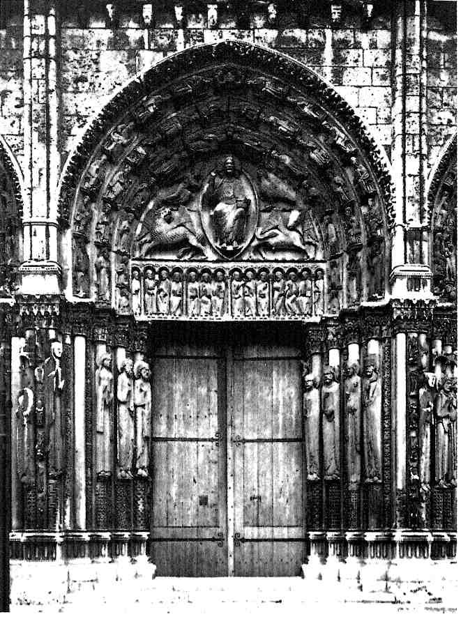 Богословие шло рука об руку с экономикой и политикой. Прославление Сына Человеческого переплеталось с прославлением могущества епископов и городов. Богатство Церкви во многом определялось богатством горожан. «Богатство текло в епископскую казну <...> через пожертвования. Совесть у купцов была неспокойна. Они все время слышали: "ни один торгующий не может быть угоден Господу", потому что наживается за счет своих братьев.<..> С приближением старости деловой человек, беспокоясь о душе, желал искупить грехи, щедро одарив какой-нибудь монастырь. <...> Во времена Людовика VII и Филиппа Августа река благочестивых подношений потекла от разбогатевших горожан. <...> Строительные планы епископов, требовавшие огромного количества денег, в первую очередь были направлены на то, чтобы утвердить их собственное могущество, способствовать их личной славе. Епископ был сеньором, князем и желал, чтобы о нем говорили. Новый собор казался ему подвигом, победой; он мечтал о нем, как полководец о выигранной битве. Чувствуется, что Сугерий, описывая предпринятые по его указанию строительные работы, трепещет от гордости. <...> Епископская церковь символизировала также союз <...> церковной и королевской власти. <...> Она была памятником королевскому могуществу: те же возвышающиеся над фасадом башни, те же статуи-колонны, изображения на которых допускали двоякое толкование. Народ узнавал в них скорее французского короля Филиппа и королеву Агнессу, чем царя Соломона и царицу Савскую. Наконец, новый собор возвещал о благосостоянии финансировавшего его строительство города, пестрого сборища лавочек и мастерских, над которыми он возвышался и которые прославлял. Собор был предметом гордости горожан».