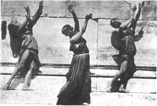 Айседора танцевала «Скифский танец» соло. Позднее ее шесть учениц стали танцевать его парами. Также они танцевали всей группой танец приветствия греческого флота.