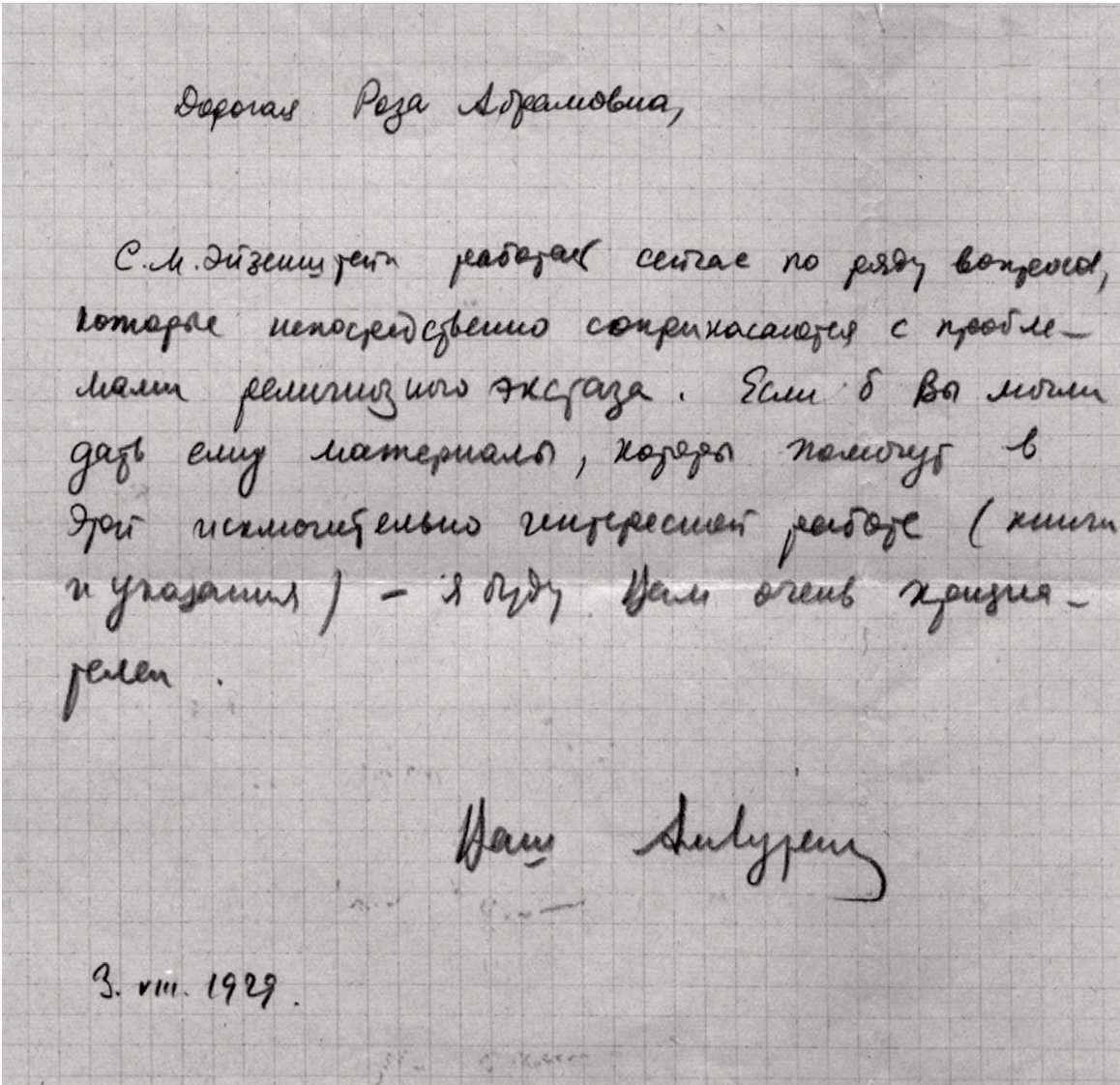 Письмо господину Кобаяси от 14 июля 1931 года в сборнике: Eisenstein 2: A Premature Celebration of Eisenstein’s Centenary. Calcutta: Seagull Books. 1985. P. 10, 11.