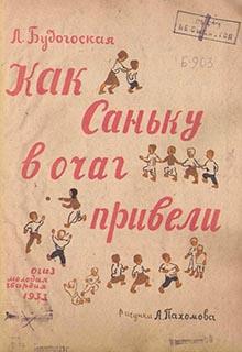 Будогоская Л. Как Саньку в очаг привели / рис. А. Пахомова. [Л.]: Молодая Гвардия. 1933. [14] с., ил. 30,5×23 см.