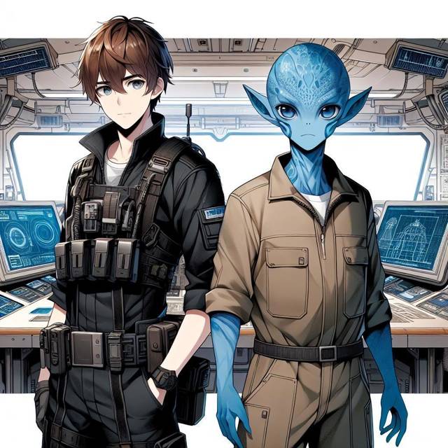 Я повернул голову и увидел парня с короткими волосами. На нем был черный комбинезон, похоже, боевой, но очень странный, устаревший на несколько веков. Рядом стоял синекожий субъект с острыми ушами, однозначно флоксиец. Комбинезон на нем тоже не отличался современным стилем.