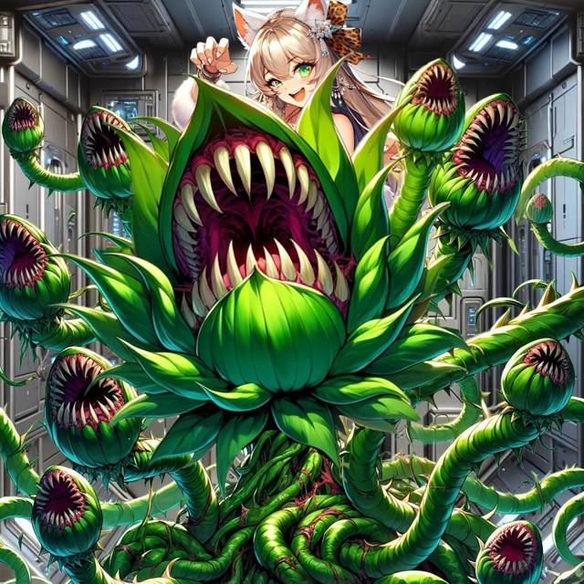Бутон раздвинул мясистые лепестки, показывая острые белые клыки и розовые десны. Из пасти чудовища вырвался рев — голодный и возбужденный. Он завершился отзвуками с каким-то стрекотом. Часть лиан взметнулась, раскрывая собственные пасти — поменьше, но такие же предвкушающие. Они завизжали, а парочка даже клацнула зубами друг на друга.