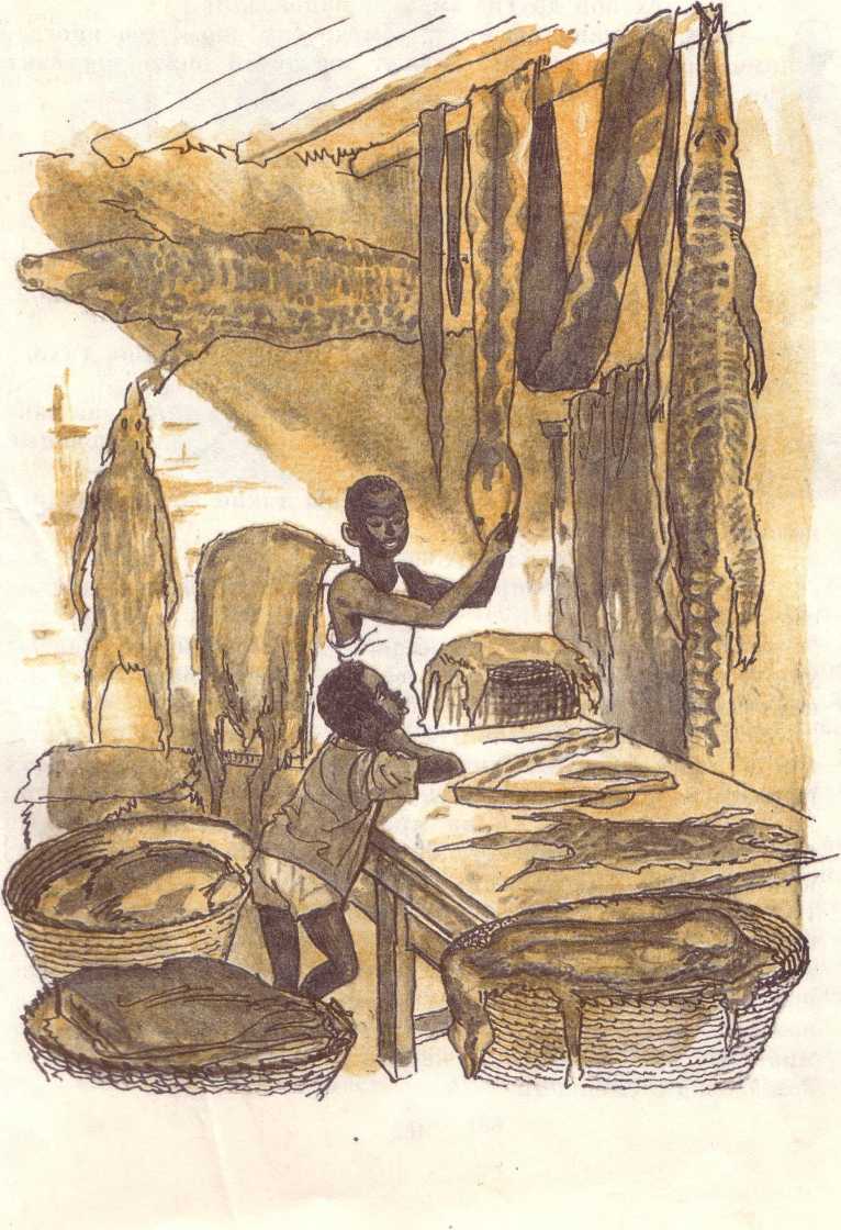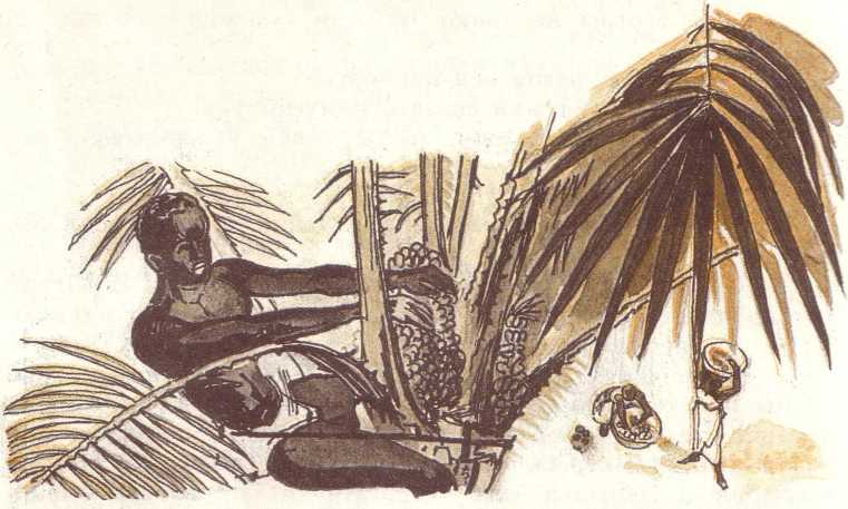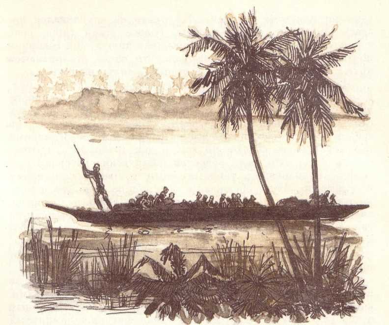 И вот старая Сикиди вместе с детьми отправилась на болота. На обоих ребятишках были только коротенькие рубашонки без рукавов из набивной ткани. И если бы не бритая головка Айао и не заплетенные в косички волосы Анату, нельзя было бы разобрать, кто из них мальчик, а кто девочка.