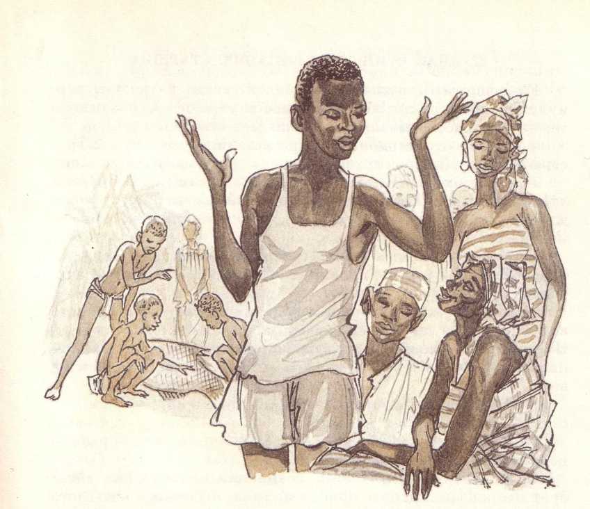 Но Бели-Кенум рассказывает о том же гораздо мягче, он описывает порядки колониальной школы, не давая им прямой оценки. Говоря об отношениях европейцев и африканцев в колониальную эпоху, Бели-Кенум тоже воздерживается от резкого обличения: он только раз вскользь упоминает о европейце, который был груб с африканскими ребятишками, но потом осознал свою неправоту и совершенно изменился. Все дело тут в том, что для писателей независимой Африки разоблачение колониальных порядков, ушедших в прошлое, — это лишь одна из задач, хотя и очень важная.