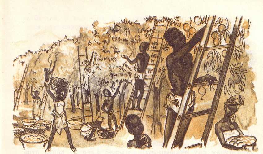 Муравьи путешествовали уже около трех дней. Они вышли из джунглей и заполонили апельсиновый сад Амаду Кнланко. Вчера их там в огромном количестве перетоптали дети. Была ли это та самая колонна свирепых, хорошо организованных и дисциплинированных насекомых, упорно продвигавшихся вперед плотно сжатыми рядами, готовых ценой жизни устранить любое препятствие на своем пути? Сколько таких муравьиных когорт двигалось из конца в конец Югуру!