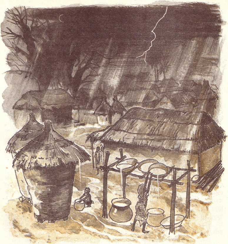В страхе, что кому-то из детей угрожает опасность, все взрослые, еще толком не проснувшись, бросились сломя голову к большой хижине. Айао, совсем голый, бегал взад-вперед, стараясь сбросить с себя муравьев, которые облепили все его тело и больно кусались. Мать схватила пань мальчика, сплошь покрытую насекомыми, и с громкими проклятиями, взывая ко всем богам и духам Югуру, стала с силой трясти ее. Родные и двоюродные братья и сестры Айао, не отставая от взрослых, топтали муравьев ногами. Но меньше их от этого не становилось. Неисчислимая рать все ползла и ползла...