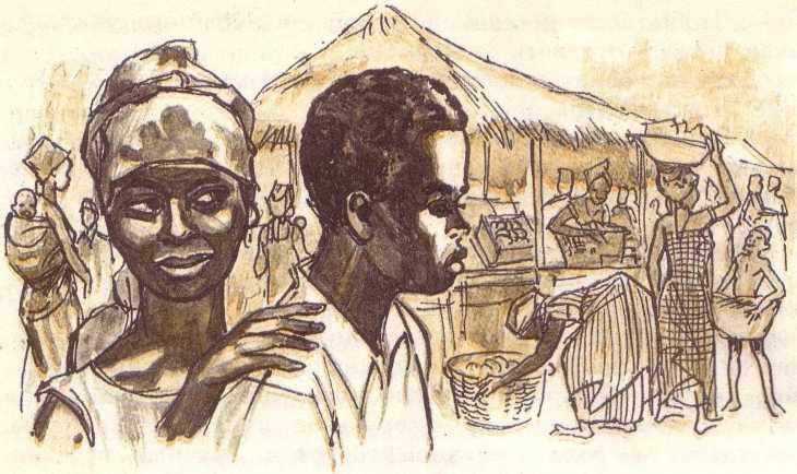 Таков, например, мелкий торговец Джери, герой романа нигерийского писателя Джона Мунони «Торговец из Обанге» (1971). У него шестеро детей, и он хочет, чтобы все они, в том числе и дочь, окончили школу, хотя плата за обучение слишком высока...
