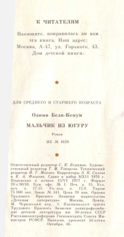 В этой книге находит для себя много интересного и неафриканский читатель. Описания природы тропической страны и красочного быта ее жителей, повседневных забот, печалей и радостей ее трудовых людей, занятий и наиболее ярких впечатлений африканских ребятишек — все это остается в памяти тех, кто познакомился с историей мальчика из деревни Югуру. Книга Бели-Кенума вызывает симпатии к далекой, но ставшей нам более близкой и понятной африканской земле.