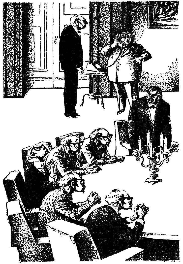 — Зажёгся двадцать седьмой, — сказал дежурный. — Лаборатория Миллера… Я ещё подумал: кто может быть там в такой поздний час? Снял телефонную трубку… набрал номер… Никто не ответил. Пока я звонил, сигнал погас… Я успокоился. Решил: какая-нибудь неисправность в сигнализации. Но сигнал сейчас же вспыхнул опять! Тогда я пошёл наверх… пошёл по коридору… Я смотрел на таблички… я никогда не был в этой лаборатории… не знал, где дверь… И тогда… — Голос дежурного вдруг стал глухим, словно раздавался из пустой бочки. — И тогда я встретил его.