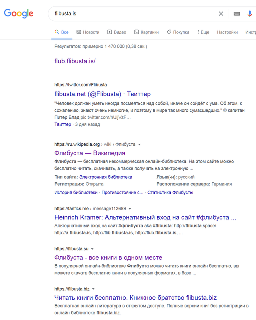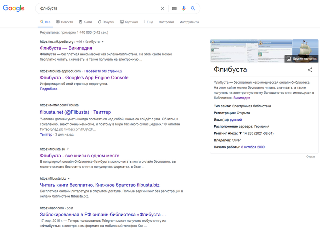 при поиске "флибуста" в гугле оф.сайта нет в выдаче.